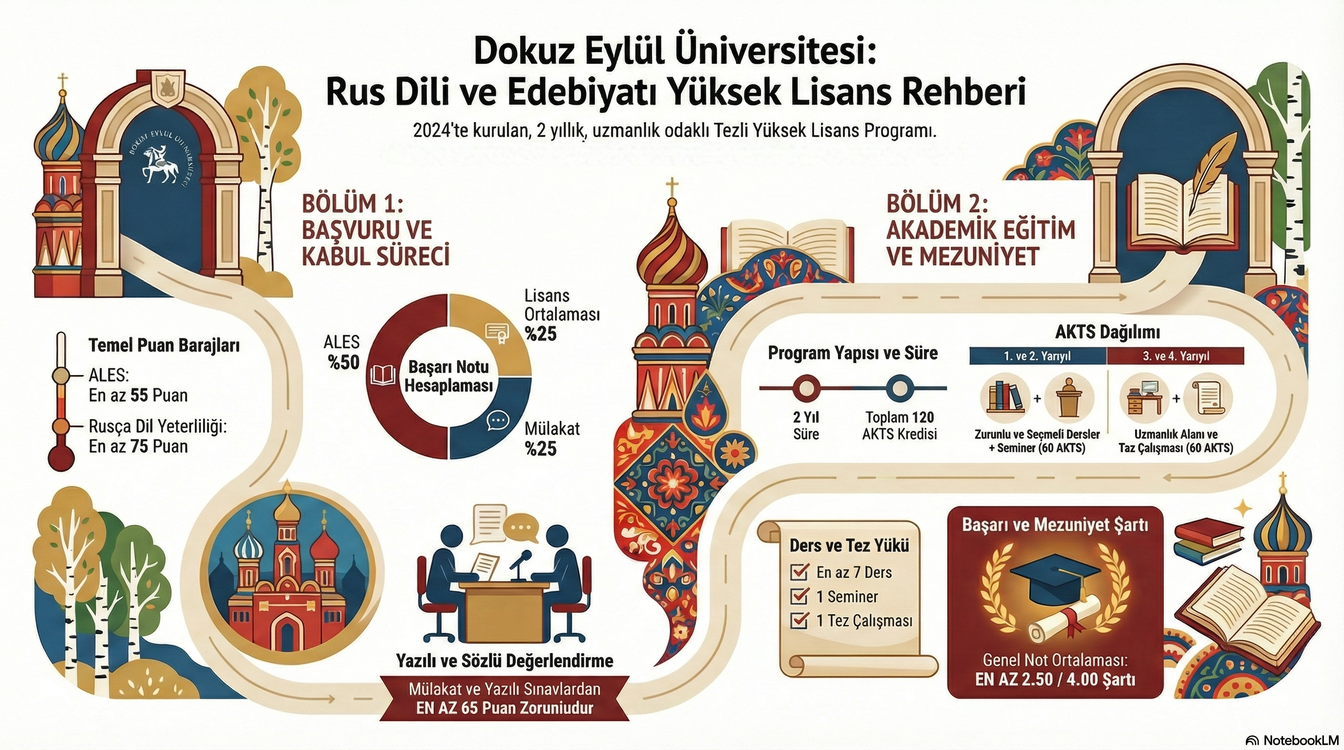 Rus Dili ve Edebiyatı Yüksek Lisans Programına başvuru ve kabul süreci Sosyal Bilimler Enstitüsü tarafından yürütülmektedir ve güncel duyurular ile detaylı bilgi için https://sbe.deu.edu.tr/ adresi ziyaret edilmelidir.